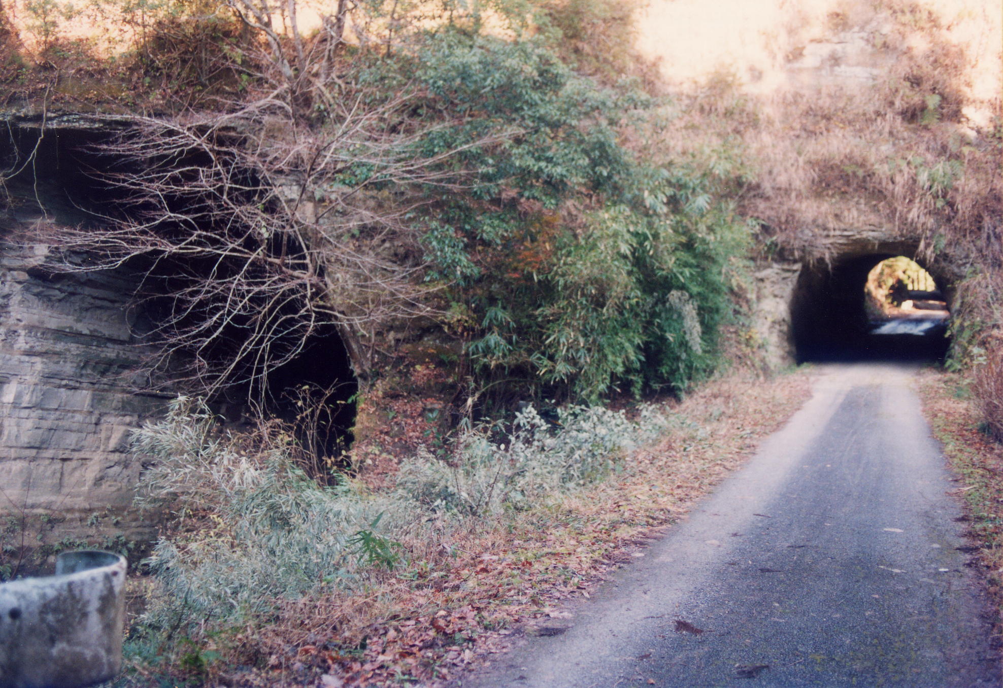 | 筒森 蕪来間のトンネル 左に夕木川の河川洞が見える。蕪来川筒森川 |