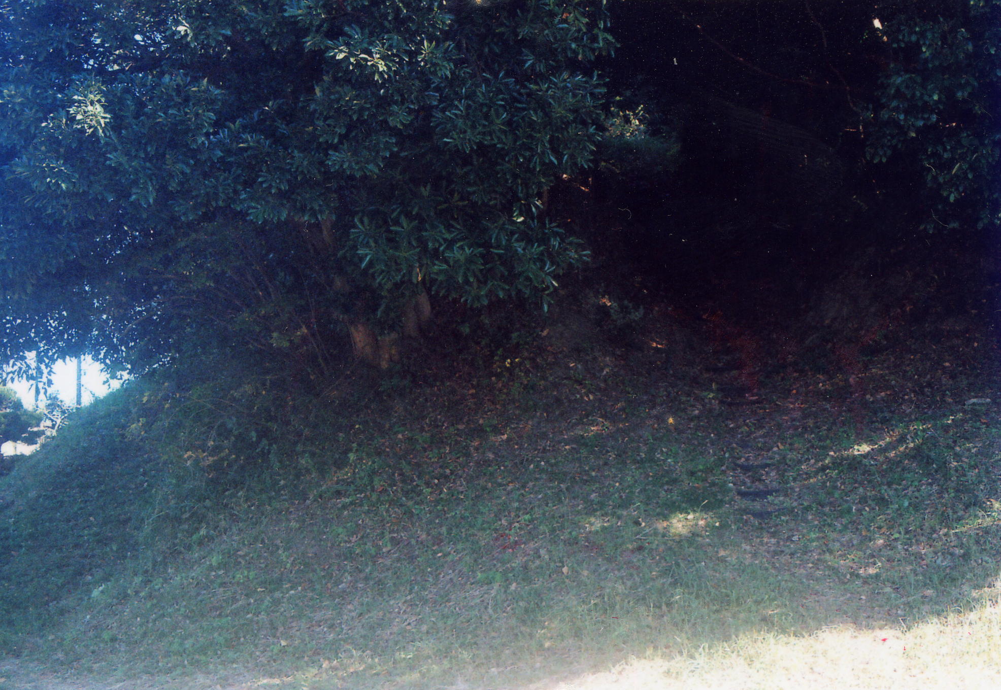 像を拝した後、二又を左へ登ると二郭相当の尾根筋に出る。左へわずか登ると主郭だ。北寄りに進むと林を透