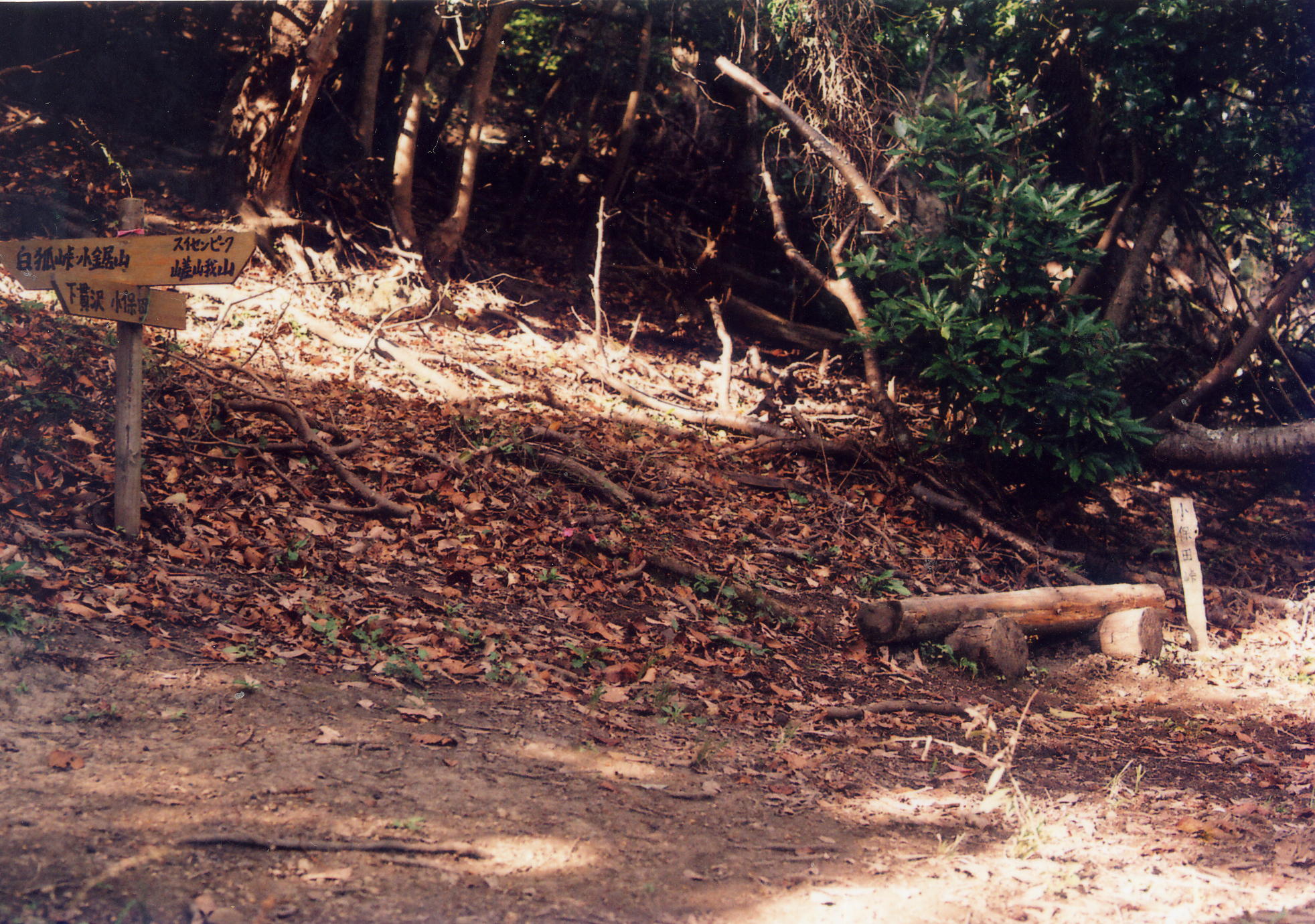 (歩道)とも書かれている。そちらへ進めば、白狐川の上流を渡り、タブノキ分岐◆から嵯峨山または小保田へ