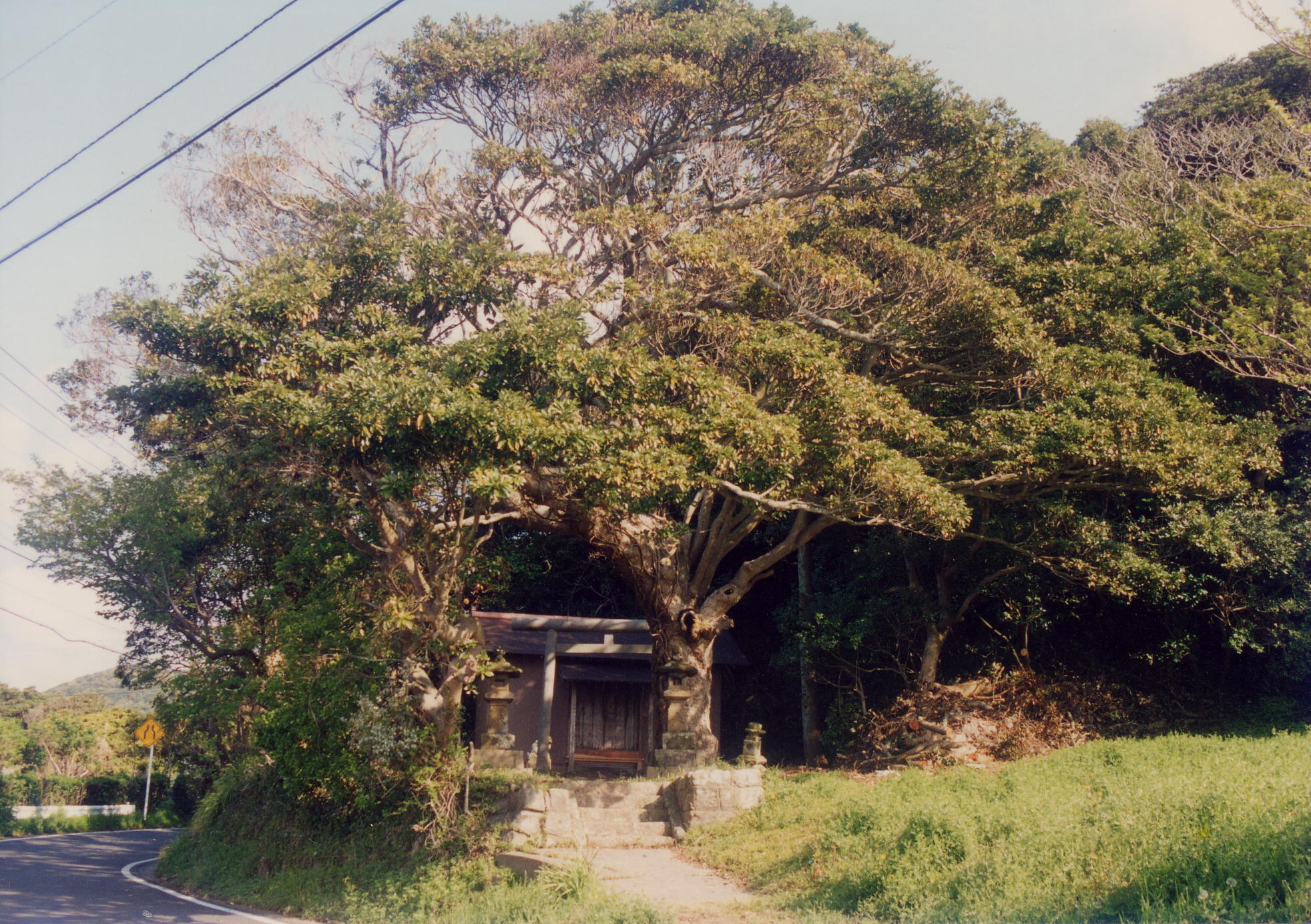 マテバシイの繁る幅広い尾根筋を通ると再びマテバシイの大木の肩に出る。急坂を登ると石祠のある頂上に