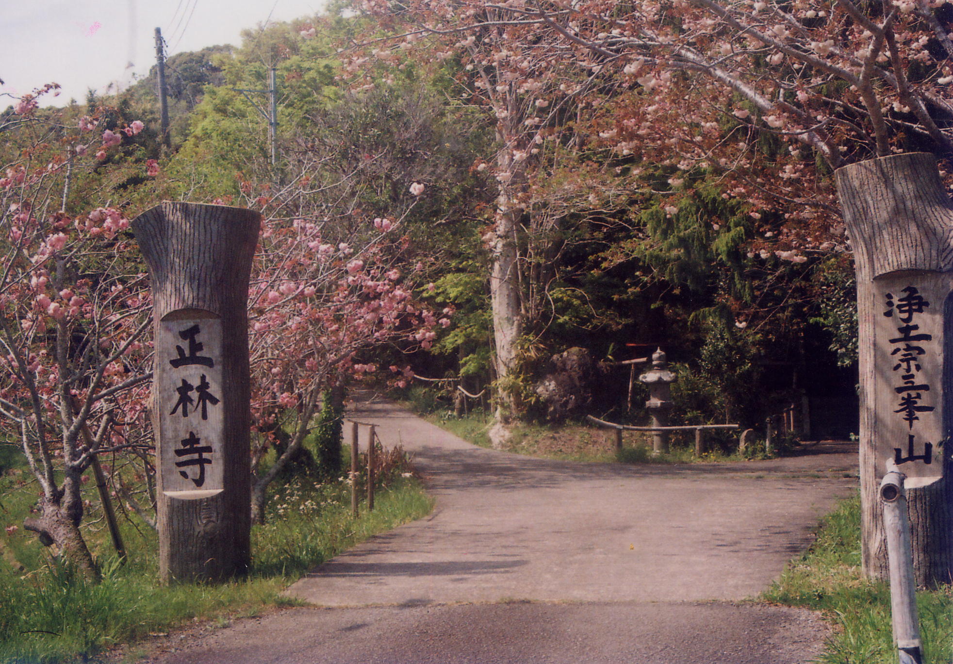 浄土宗正林寺の裏山側の出入口だ。境内にはギャラリーとしてユニークな絵画、書、塑像を展示した常愧庵と