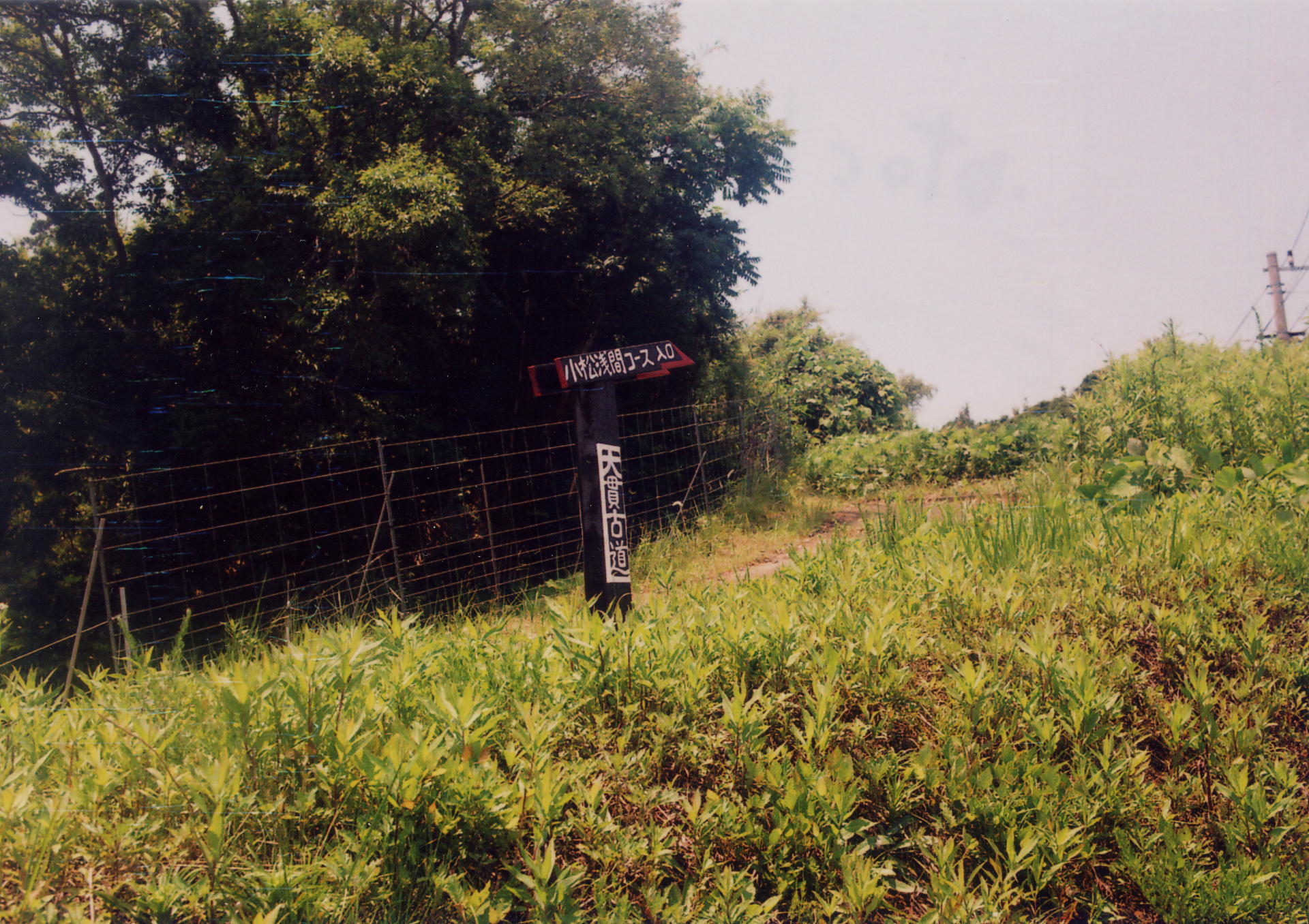 新道グリーンラインとの交差点■、八雲神社の小社の脇、二本の椰子の木から山道に入る箇所、嵐の為に倒
