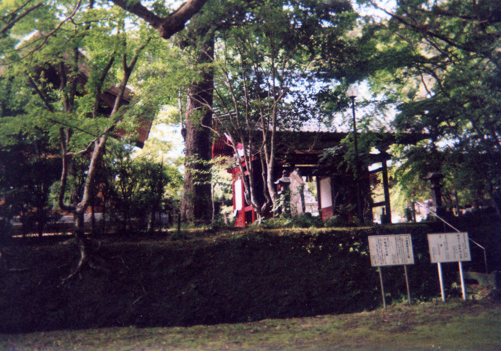 は「八雲」の文字の刻まれた小社(小社)が祀られる。その脇にはコンクリート斜路が西へ登っている。二本の椰
