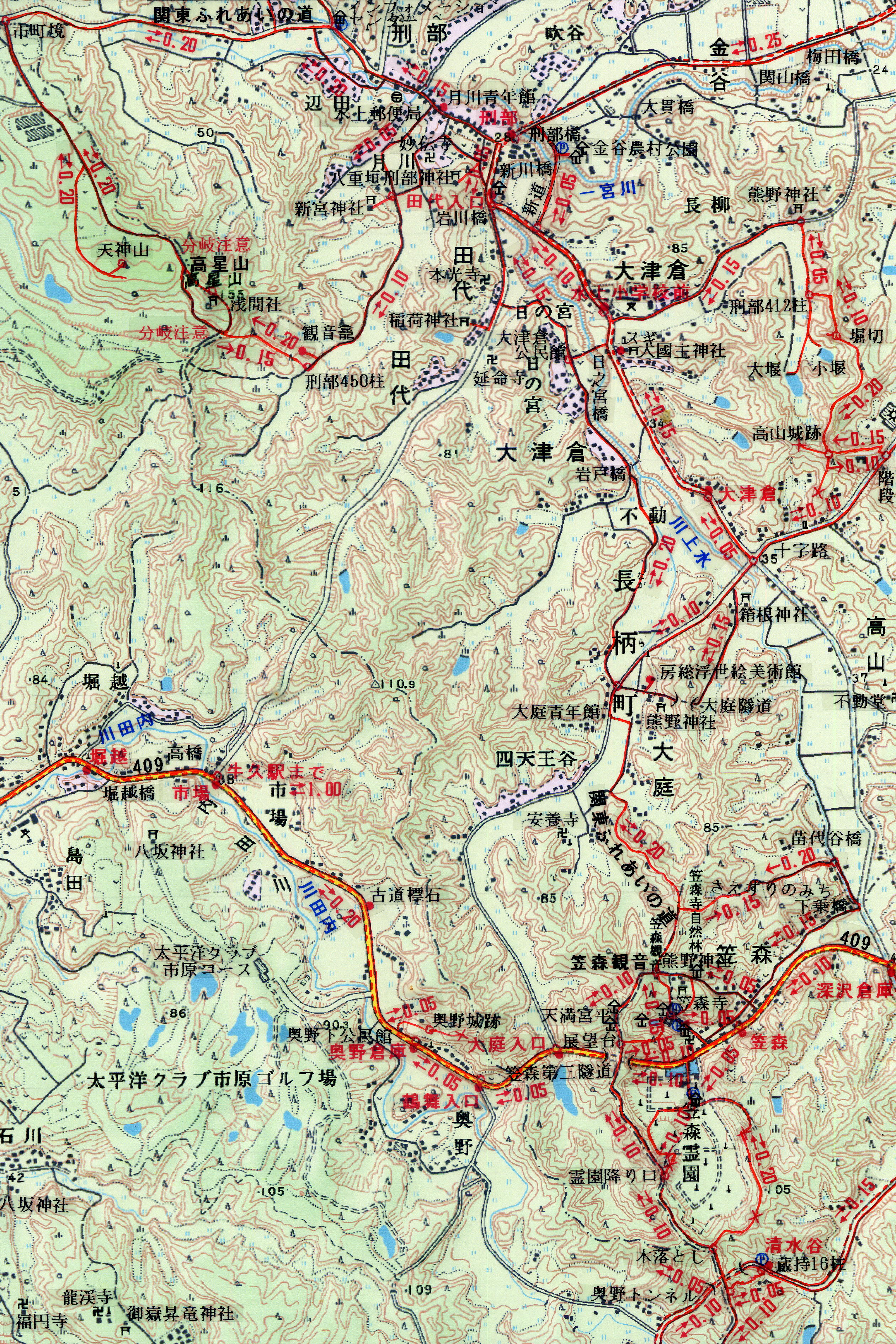 北から1キロ、東から0.4キロの箇所、黒破線を無視。東寄りに赤線を引いています。