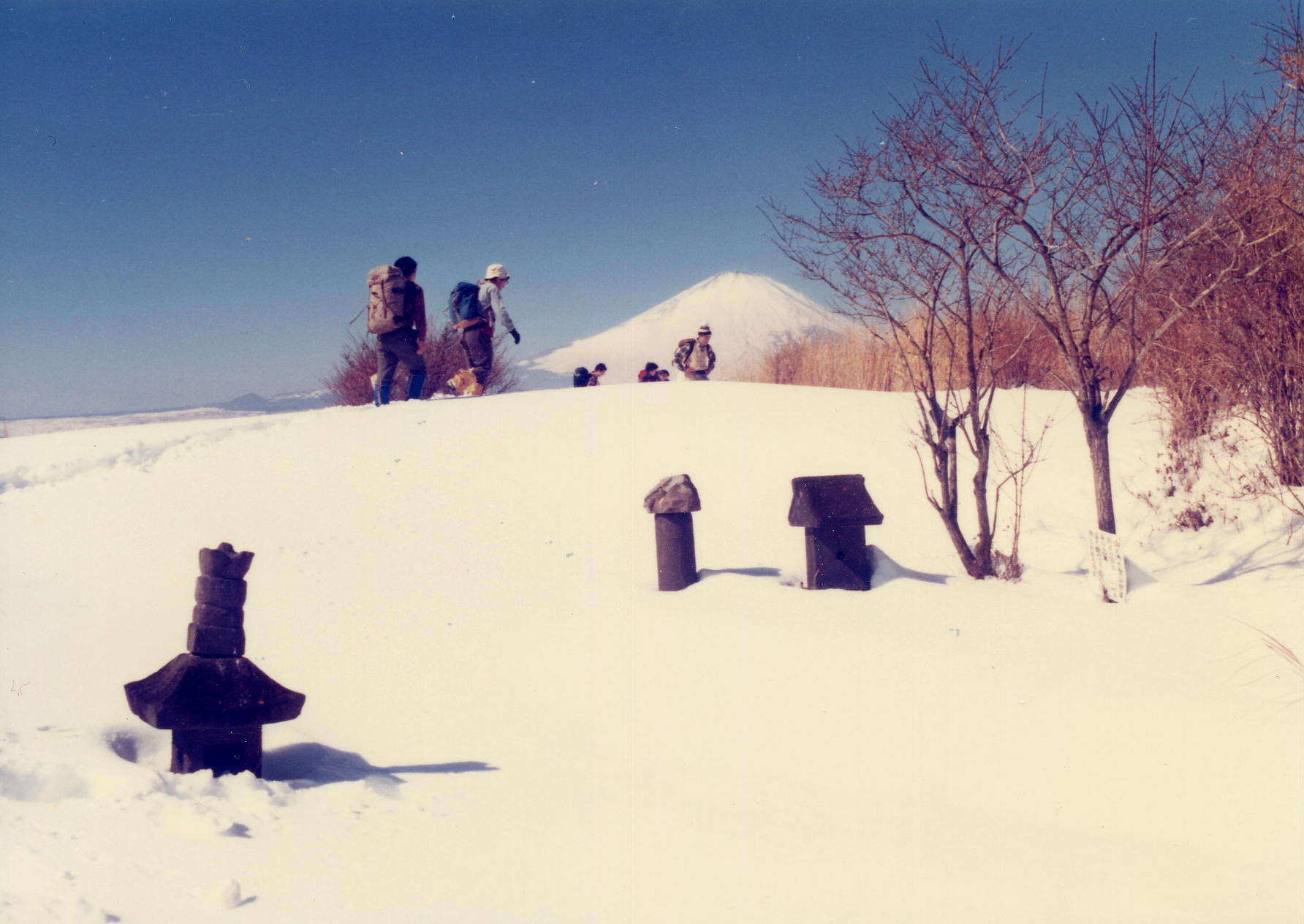 | 駒ケ岳 | 矢倉岳山頂 石塔 ハイカー 富士山 |