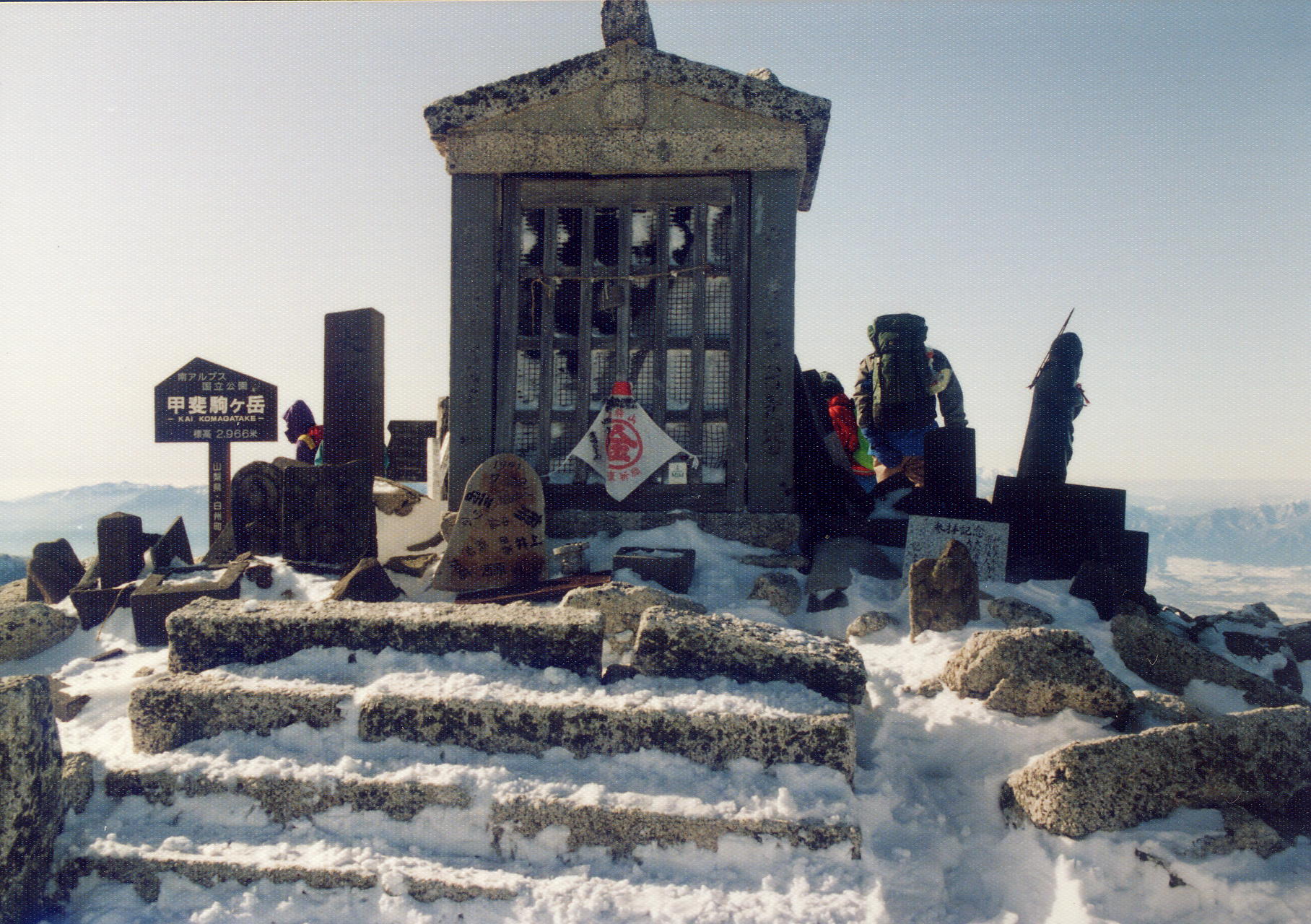 | 仙丈ヶ岳から 右側は早川尾根 | 甲斐駒山頂の社 | 北岳附近から遠望 |