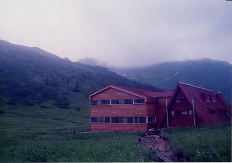 | 頂上にて この日は台風が直撃 | 黒部五郎小舎 |