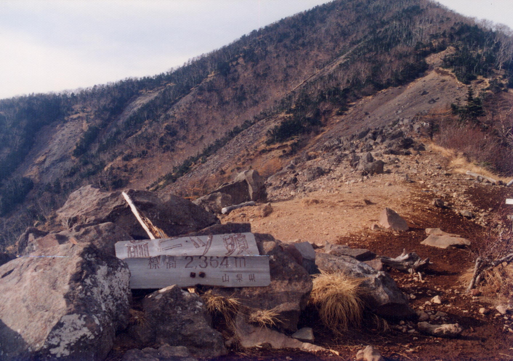| 権現岳の東 天女山の石標 | 前三ッ頭の標識 |