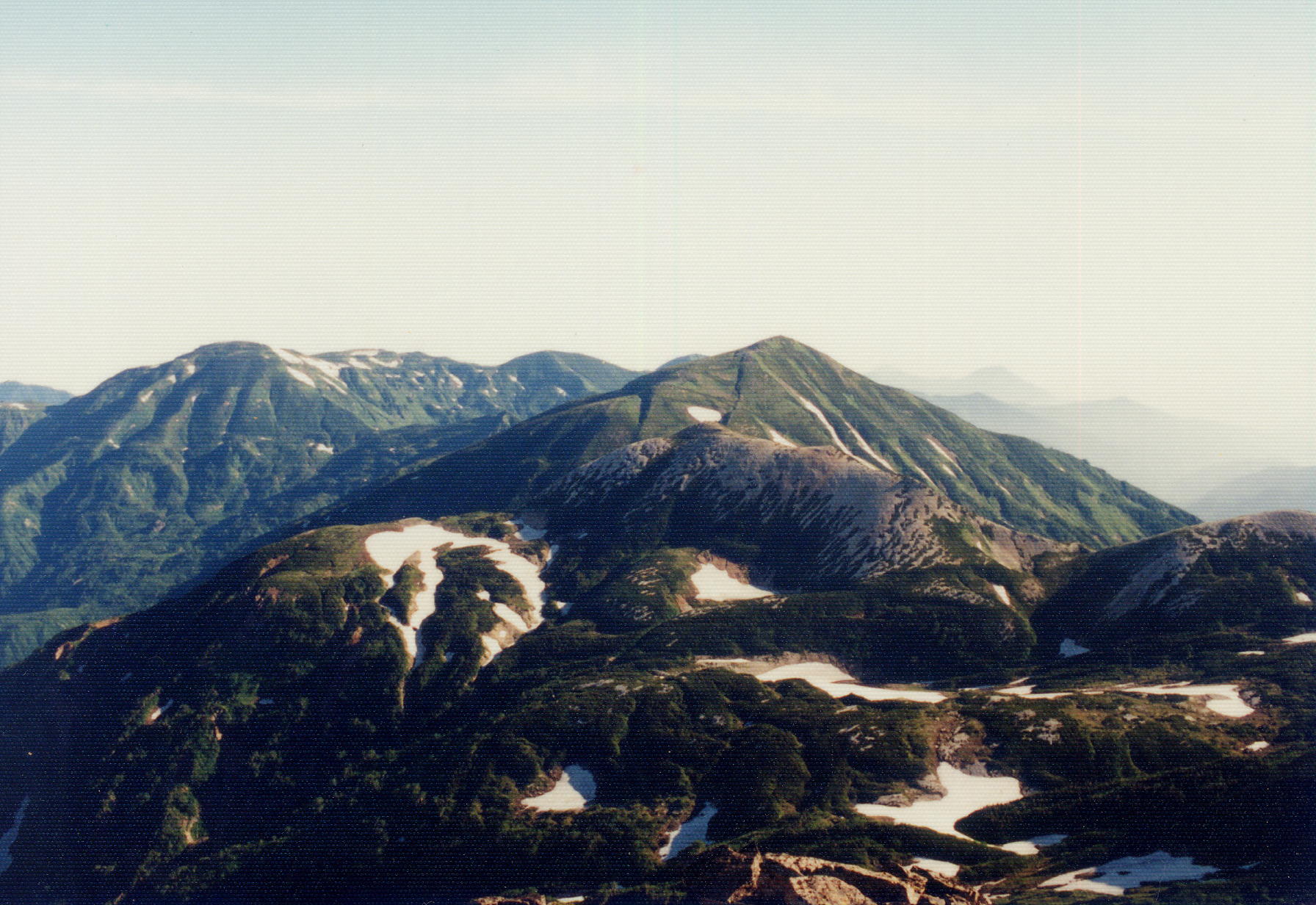 右寄りの三角は雪倉岳