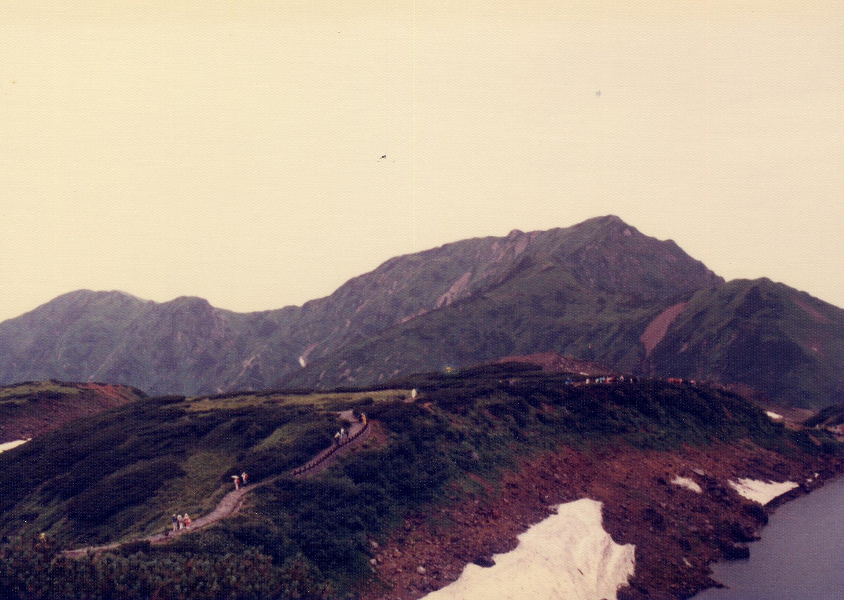 右寄りに奥大日岳中央左の鞍部越に大日岳