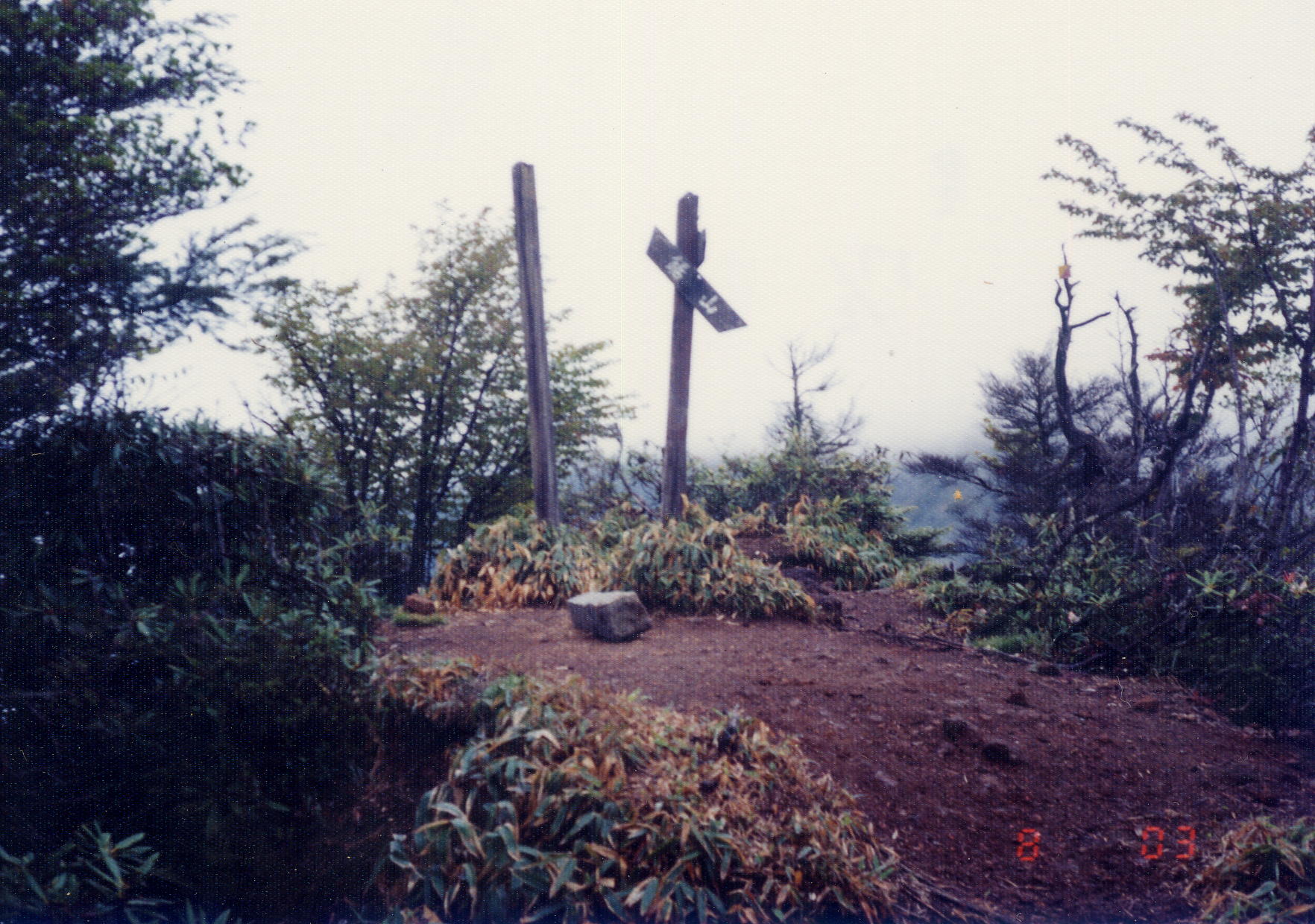 皇海山 山頂 中央に剣が立つが