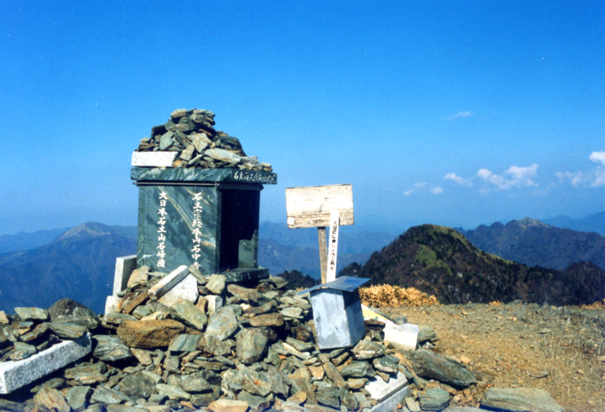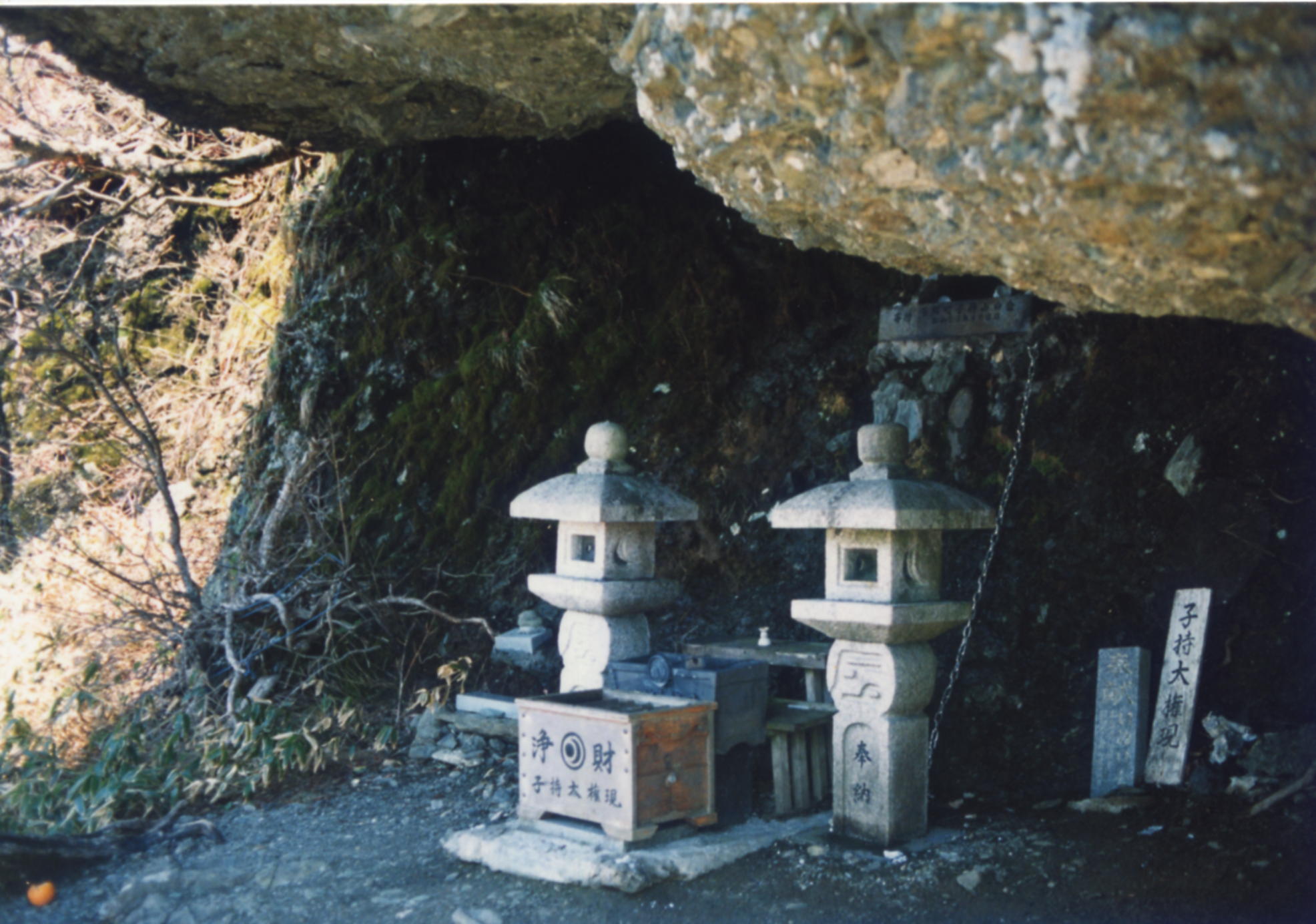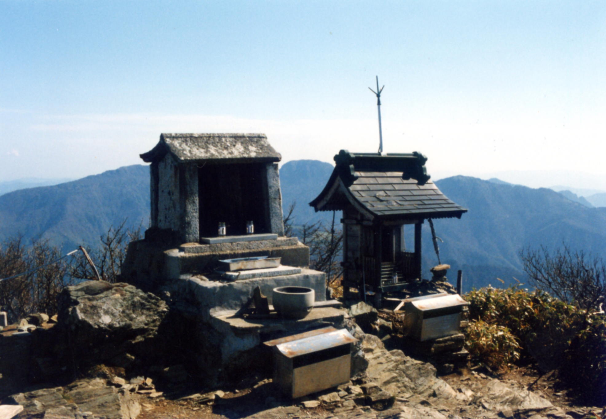 | 子持権現山の山頂にある拝所 石鎚山にあるような急斜面の鎖を 登った上にあります。 |
